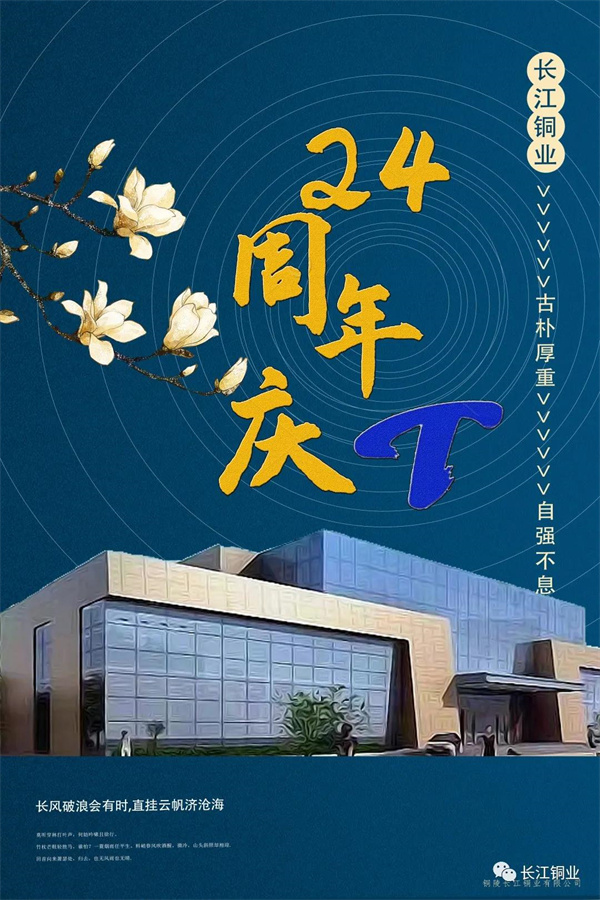 2021年是公司成立的二十四周年,在此對公司所有員工表示最誠摯的感謝和祝福。感謝各位員工24年如一日的初心未改,兢兢業(yè)業(yè)為公司揮灑汗水,為公司高效穩(wěn)定的發(fā)展提供源源不斷的支持力。展望未來,公司將繼續(xù)保持穩(wěn)中求進(jìn)的發(fā)展,追求精益求精,臻于不斷完善發(fā)展,以優(yōu)質(zhì)產(chǎn)品和誠信經(jīng)營在市場上謀求更大的空間,在雙贏中共同發(fā)展!最后祝愿銅陵長江銅業(yè),且把匠心致初心,共創(chuàng)長銅美好未來。