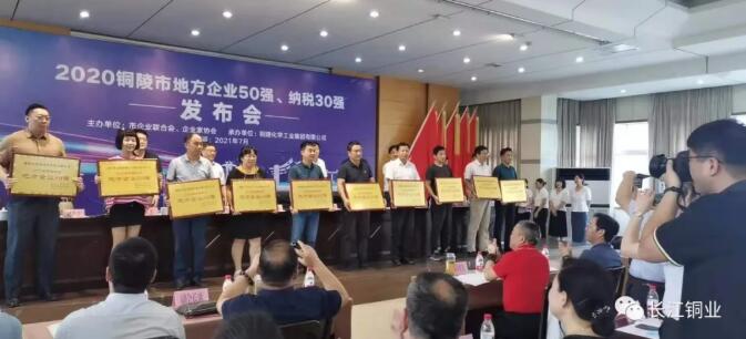 2021年7月6日下午,由市企業(yè)聯(lián)合會(huì)、市經(jīng)信局、市稅務(wù)局聯(lián)合舉辦的2020年度銅陵市“地方企業(yè)50強(qiáng)”“納稅30強(qiáng)”發(fā)布會(huì)在銅化集團(tuán)會(huì)議室隆重召開(kāi)。副市長(zhǎng)王綱根,市老領(lǐng)導(dǎo)、市“四會(huì)”創(chuàng)始會(huì)長(zhǎng)唐世定,市委宣傳部副部長(zhǎng)章祎,市中小企業(yè)局局長(zhǎng)朱永平,市稅務(wù)局黨委委員、副局長(zhǎng)李軍等領(lǐng)導(dǎo)出席會(huì)議。發(fā)布會(huì)上,我司被授予“2020年度銅陵市地方企業(yè)50強(qiáng)”的榮譽(yù)稱(chēng)號(hào)!